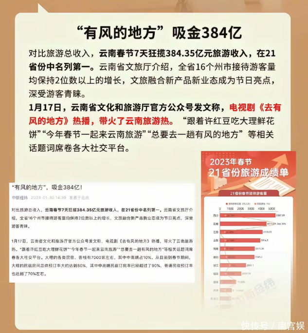 在刘亦菲相关颁奖词词中,提到了一个文旅消费结合,也间接证实了“刘亦菲效应”,就拿《去有风的地方》来说,这部剧带火了云南文旅,甚至很多明星网红带头打卡,刘亦菲功不可没,和男主角的爱情线让云南这个地方充满了文艺气息。